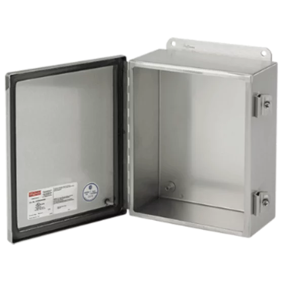 WALL MOUNTING ENCLOSURE SS316L, SIZE: 300 H x 300 W x 150 D MM WITH MOUNTING PLATE, NEMA/EEMAC Type 3R, 4, 4X, 12, 13, IP66