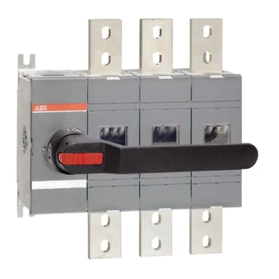 3-pole, front operated, base mounted switch-diconnector with black IP65 handle and shaft, terminal bolt kit included