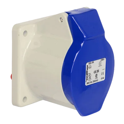 WALTHER Panel socket 32A 3P 230V 6h IP44 straight made from PA6 material finger-safe in accordance with BGV A3 soft transition radius from flange to collar flange 75×75 fixing center 60×60