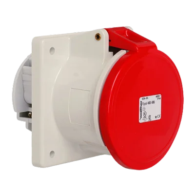 WALTHER Panel socket 63A 4P 400V 6h IP44 straight made from PA6 material finger-safe in accordance with BGV A3 soft transition radius from flange to collar flange 107×100 fixing center 85×77