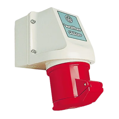 WALTHER Wall socket 32A 4P 400V 6h IP44 made from PA6 material with screw terminal for internal fixing with two knock-out cable entries both top and bottom and one knock-out floor entry