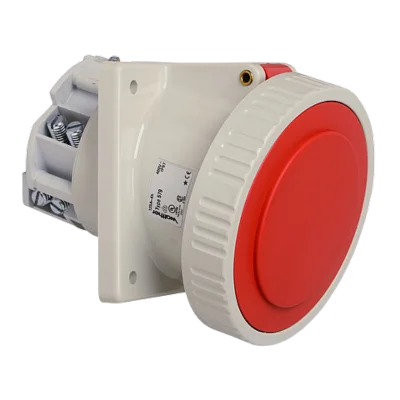 WALTHER Panel socket 125A 5P 400V 6h IP67 angled made from PA6 material finger-safe in accordance with BGV A3 soft transition radius from flange to collar with multi-contact flange 114x114mm fixing center 90x90mm