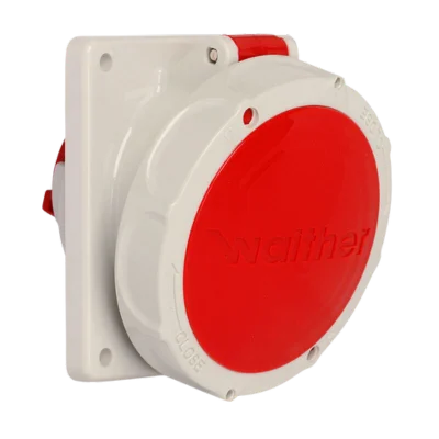 WALTHER Panel socket 16A 5P 400V 6h IP67 angled made from PA6 material finger-safe in accordance with BGV A3 soft transition radius from flange to collar flange 100x92mm fixing center 85x77mm