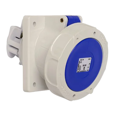 WALTHER Panel socket 63A 3P 230V 6h IP67 angled made from PA6 material finger-safe in accordance with BGV A3 soft transition radius from flange to collar flange 107×100 fixing center 85×77