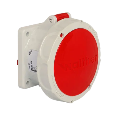 WALTHER Panel socket 32A 5P 400V 6h IP67 straight made from PA6 material finger-safe in accordance with BGV A3 soft transition radius from flange to collar flange 75x75mm fixing center 60x60mm